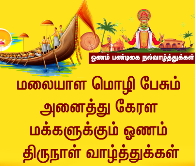 ஓணம் பண்டிகை வாழ்த்துக்கள் on August 29, 2020 Get link Facebook X Pinterest Email Other Apps மகாபலி சக்கரவர்த்தி ஆண்டு தோறும் மக்களை காண வரும் இந்த “ஓணம்” நாளை, “திருவோணம்” என்று போற்றி விழாவாக கொண்டாடுகிறார்கள்.அனைவருக்கும் ஓணம் நல் வாழ்த்துக்கள்Happy OnamWishing You All A Very Happy Onamஓணம் வாழ்த்துகள்ஓணம் திருநாள் நல்வாழ்த்துகள் Comments